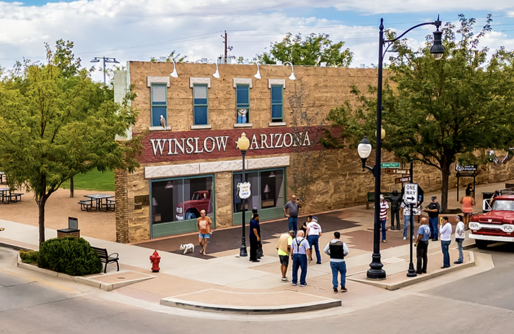 In Winslow, Arizona, lijkt de tijd even stil te staan bij Standin’ on the Corner Park. Hier komt het beroemde nummer Take It Easy van The Eagles tot leven. Op het kruispunt vind je een muurschildering, een bronzen standbeeld en een vintage Ford-pick-up, precies het decor om zelf “standin’ on the corner in Winslow, Arizona” te ervaren.