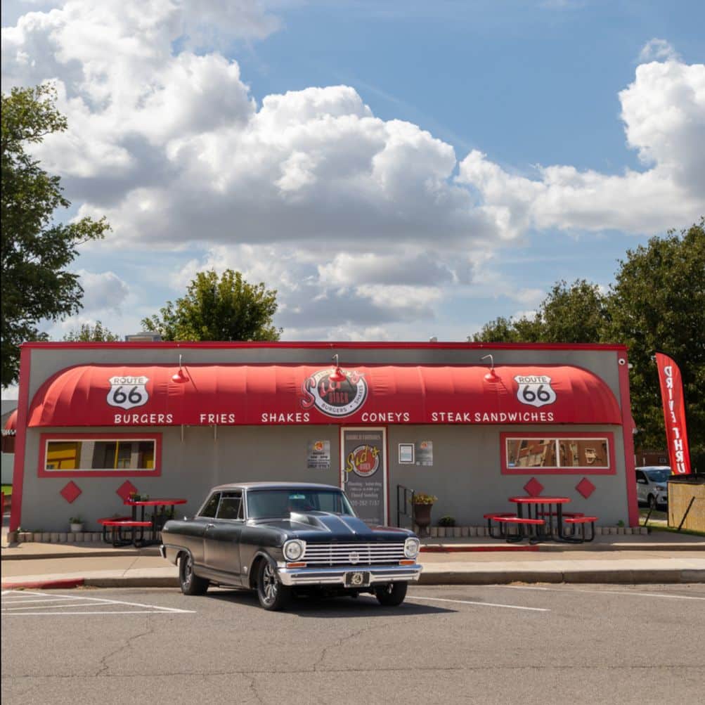 TIP: Sid’s Diner in El Reno, Oklahoma, een klein restaurant langs de weg, met precies de sfeer die je in een provinciestadje mag verwachten. Beroemd om zijn uienburgers!