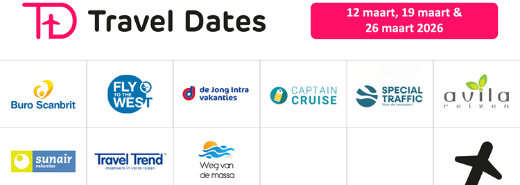 Negen touroperators houden samen de vijfde editie van Travel Dates. De formule blijft vertrouwd; de reisagent wordt ontvangen met een drankje en lekker buffet, waarna zij tijdens negen Travel Dates worden geïnformeerd over de nieuwtjes en must-knows van de deelnemende touroperators. Avila Reizen, Buro Scanbrit, Fly to the West, De Jong Intra, Special Traffic, Sunair Vakanties, Travel Trend, Weg van de Massa en dit jaar de nieuwe partner Captain Cruise kijken ernaar uit om de reisagent te ontmoeten en spreken, zodat de reisagenten vol kennis de mooiste reizen inclusief de leukste extra’s kunnen verkopen.
